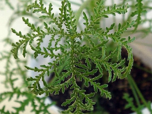 Я про видовой душистик Р. Filicifolium с резными, перистыми листочками, который имеет ажурный, воздушный куст в отличии, конечно, от мощного тела Дракона. А ещё у него смолистый запах с примесью мяты, хотя иногда его описывают как бальзамический. Каждый листовой сегментик имеет зубчатый край. Ну, точно как зубья на крыльях Змея, только в миниатюре. В природе этот душистик растёт на юге Африканского континента. Благодаря своим необычным мелкозубчатым листочкам пеларгония эта была культивирована, а затем сохранена как отдельный вид. Листва – это условное значение веточек с иголочками, которые покрывают весь стебель растения. Впервые увидела эту пеларгонию зимой 2022 года. Очаровала она меня именно своими ажурными листочками, у которых есть схожесть с листьями комнатного растения Аспарагус. И, конечно, приобрела её. Сейчас душистику 2,5 года, разросся он и выглядит на все 5 лет, а то и больше. Одним словом – ажурное дерево, стволики которого со множеством верхушек-голов не выдерживают