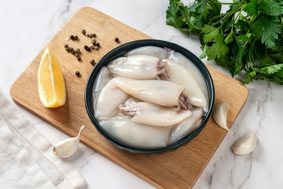 Кальмар — морской моллюск, мясо которого обладает нежным сладковатым вкусом. Он, в отличие от многих других морепродуктов, вполне доступен по цене, благодаря чему кальмар стал так востребован у современных хозяек. Вареных моллюсков добавляют в салаты и супы, используют в качестве закуски и начинки для блинов. Однако есть у этого продукта и существенный недостаток — при длительной термической обработке кальмар теряет вкусовые качества и становится как резина. Чтобы этого избежать, необходимо знать, сколько варить кальмаров. Редакция «Едим Дома» поможет разобраться во всех тонкостях процесса. Разморозка — важный этап обработки кальмаров перед приготовлением. Варить морепродукты замороженными не рекомендуется. Это негативно скажется на вкусе и текстуре мяса. Размораживать кальмаров лучше всего на нижней полке холодильника. Процесс займет несколько часов. Если у вас нет столько времени в запасе, залейте тушки чуть теплой водой и оставьте на 30 минут. После этого можно приступать к очистке.