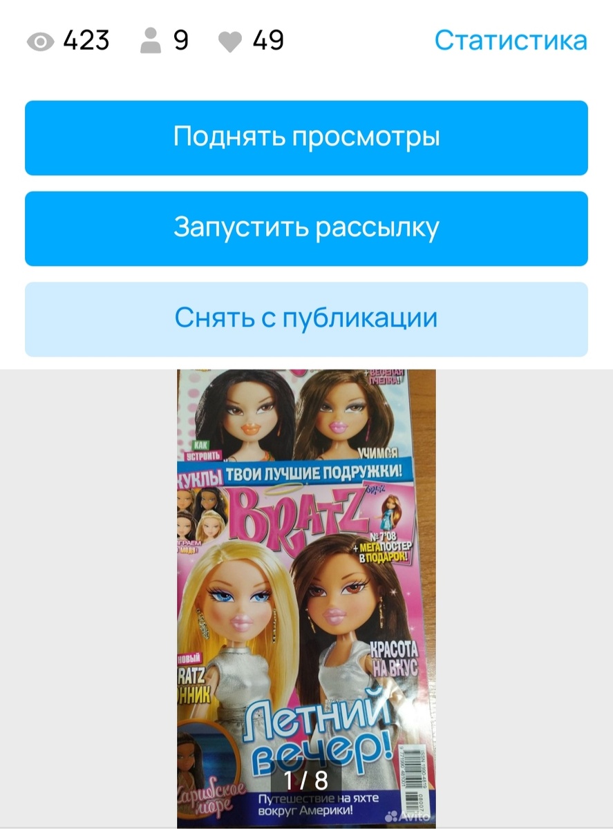 Первая сентябрьская продажа! ( заказ сделан в августе) Продались два журнала Bratz 2008 года, номера 6 и 7. Журналы без постеров, раскраски раскрашены, тесты и кроссворды разгаданы, поэтому цена 100 рублей за один журнал. Полгода назад продала журналы Братц в почти полном варианте за 250 и 270 рублей. Потихонечку продажи идут, денежки копятся, мечты становятся все реальнее.
