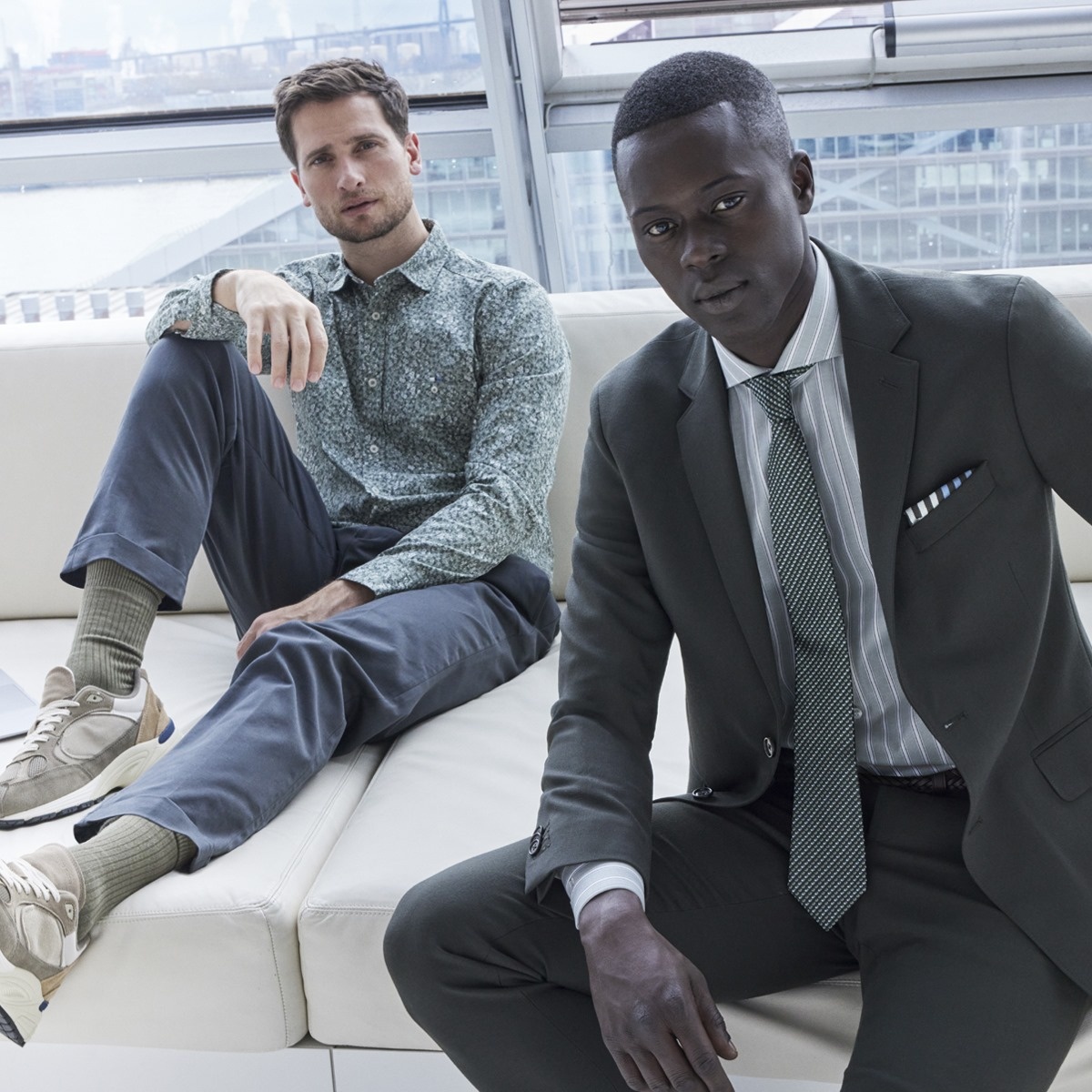 Образ на осень – это не только про стиль, но и про тепло, функциональность и цветовую гармонию. Яркие краски и смелые принты здесь уступают место более сдержанным оттенкам и монохрому. Цвет добавляем посредством акцентов. Предлагаем вам несколько универсальных сетов на каждый день. Расслабленный и уютный. Базой здесь может быть сет из футболки с брюками из экологичного хлопка. В качестве верхнего слоя можно надеть жакет, кардиган или легкий стеганый бомбер. Элементы образа на фото: В отсутствии строго дресс-кода допустимо миксовать классические джинсы с пиджаком., выбирая при этом практичные оттенки, которые вписываются в деловой стиль. Элементы образа на фото: Костюм – это база делового стиля. Осенью в теплые дни допускается выбор светлых оттенков, однако, когда небо «дало трещину» и пролилось дождем лучше одеть костюм универсального темного синего цвета. Есть желание создать что-то интересное, вспомните, что осень – это время ярких акцентов. Шарфы, платки, галстуки и другие аксессуар