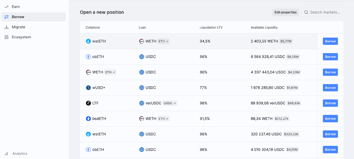Поскольку мы тут с вами про боярские дропы (активности, где не нужно совершать 100500 действий, но требуется какой-никакой капитал), то не могу не упомянуть один из гемов на горизонте – протокол Morpho. Че за Morpho? Могли слышать, но с пеной у рта никто не шиллил по понятным причинам. Это децентрализованный протокол p2p-кредитования на Ethereum и Base, собравший $69.3 млн от: a16z, Coinbase, Pantera и пр. В токеномике: 4,2% токенов $MORPHO выделено на Users и 5,4% на Early Contributors – это наш с вами кусочек. По пунктам: 1. Гигантский инвест относительно лендинг-протоколов (для сравнения все шиллили Kamino (6 млн), Zerolend (3 млн инвеста) – а здесь 70 млн. 2. Здесь есть ноу-хау. Читаем документацию: Morpho (ранее известный как Morpho Blue) — это надежный и эффективный примитив кредитования с созданием рынка без разрешения. Он позволяет развертывать минимальные и изолированные рынки кредитования, указывая: – один залоговый актив – один кредитный актив – ликвидационный кредит до сто