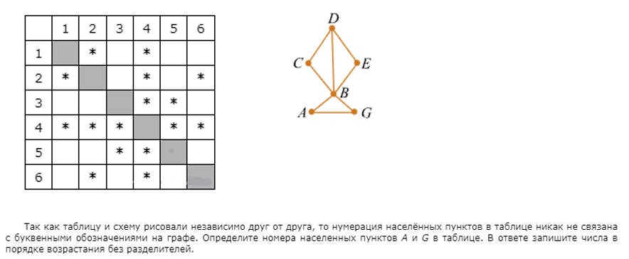 Первая задача заключается в Анализе информационных моделей. Звучит страшно, но на самом деле решается довольно просто. При ее решении не требуются какие-то специфические знания и навыки. По большому счету нужны только лист бумаги и ручка. Сама задача, как правило, делится на два подтипа, а именно: Неоднозначное соотнесение таблицы и графа и Однозначное соотнесение таблицы и графа. Отличия в решении есть, но они не значительные. Сама методика подхода принципиально не меняется. Ниже рассмотрим большую часть возможных вариантов решения.