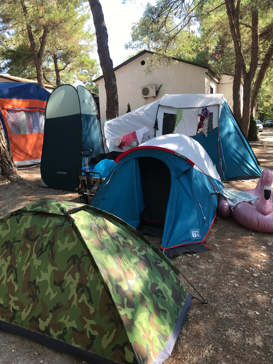 Собрались на море в кемпинг? Не проблема. «Всего-то покупаем палатку и вперед!» - думаете Вы. Но не так все оказалось просто. И даже я, совершавшая нерегулярные вылазки на природу каждое лето, немного просчиталась. Сразу скажу, что большая часть оборудования была куплена задолго до поездки. Если вы едете в отпуск семьей, и ее нужно как-та разместить, кажется, что проще купить одну большую палатку и будет круто. На рынке представлены варианты с двумя , тремя или одной просторной комнатой. Есть 5-местные, 4-местные, 6-местные. И вы думаете, как хорошо расположиться всем вместе! А теперь представьте, комфортно ли вам всей семьей лечь спать в одной комнате?! И так несколько ночей. Наверное, нет. Для меня более удобный вариант несколько трехместных небольших палаток для кемпинга на машине. Если есть возможность, можно разместиться в отдалении друг от друга. Почему трехместные? Они не намного отличаются по весу и объемам от кемпинговых двухместных, но комфорта в них в разы больше для