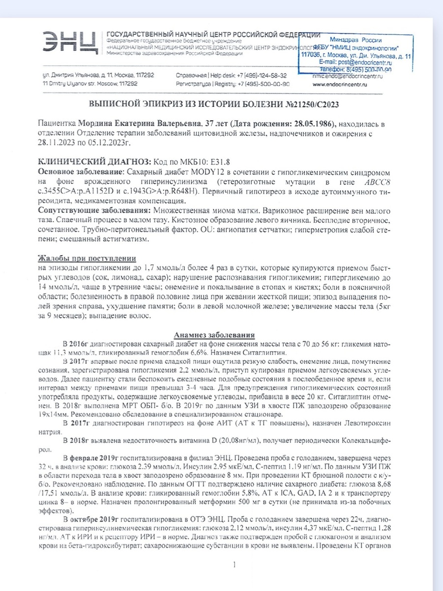 💝 Катя 💝 Диабет MODY -12 + Гиперинсуленизм 💝