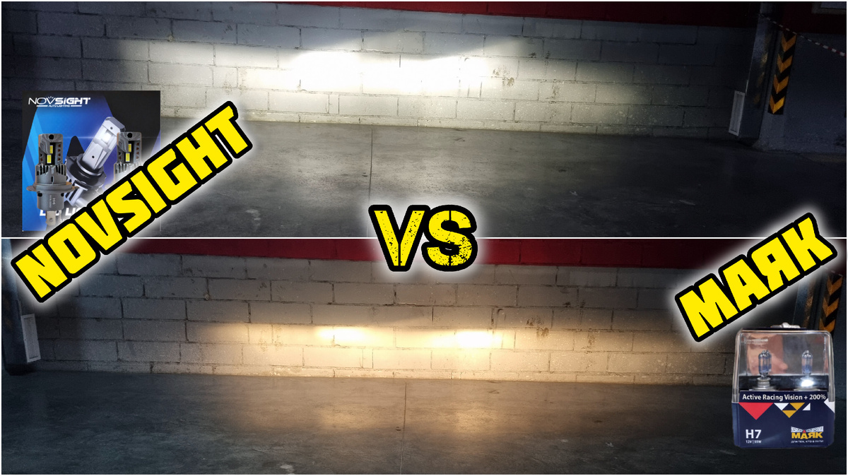 NOVSIGHT A500-N66-H4, сравниваем с работой галогенных ламп МАЯК ACTIV RACING VISION +200%