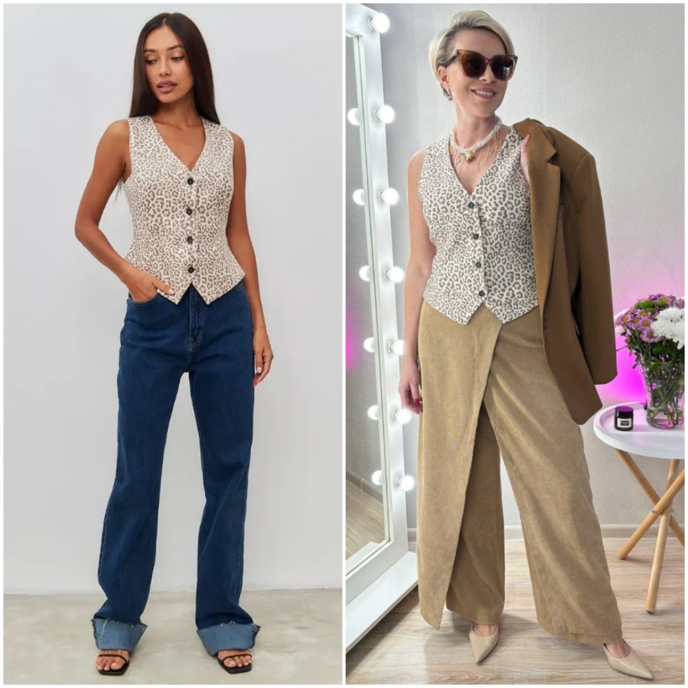 Здравствуйте, дорогие читатели! Меня зовут Ирина, я - стилист, и на этом канале показываю одежду и аксессуары с Wildberries такими, как они есть, то есть, из серии "ожидание/реальность". Мои параметры: рост 169 см, вес 62 кг, 94-74-100 ✅Основной канал: Стильно - не значит дорого! Ставьте лайк в поддержку канала, и давайте смотреть на мою сегодняшнюю покупку. Многие спрашивали меня про этот костюмный жилет с леопардовым принтом, пришло время про него рассказать. Помимо того, что разные модели жилетов сейчас очень актуальны и украшают собой множество образов, конкретно эта модель еще и порадует противников оверсайза, ибо жилет сидит по фигуре, красиво повторяя ее изгибы. Но, конечно, это не значит, что между вами и тканью не должно быть воздуха.
