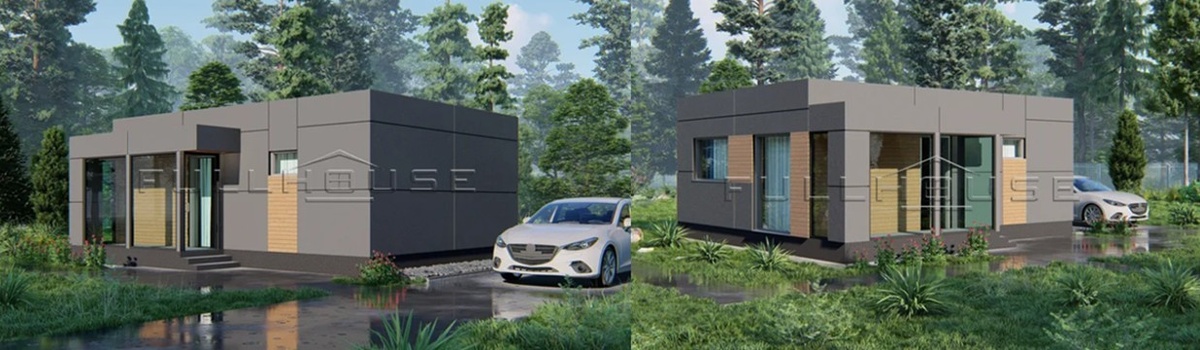 В последнее время появилось понятие дома с приставкой «мини», которую применяют к индивидуальным домам площадью менее 40 м2. Для частного дома это, может, и мало, но вполне достаточно для проживания одного или двух человек. Такая площадь эквивалентна приличной однокомнатной квартире или хрущёвской «полуторке», но при грамотной планировке жильё получается намного более удобным. Отсюда и популярность проектов маленьких домов, которые можно вписать на участок любого размера, потратить на строительство относительно небольшие деньги, и экономить на отоплении, особенно когда вода добывается из автономного источника. Отличным решением для маленькой семьи будет приобретение проекта UNICA, по которому можно построить газобетонный дом с плоской крышей, площадью 37 м2. Казалось бы, площадь довольно маленькая, но на ней размещается вполне просторная гостиная-столовая-кухня, одна спальня с нишей под встроенный гардероб, и даже сауна, примыкающая к санитарному узлу. В небольшом санузле для помывки предусмотрена только душевая зона, но если хозяевам не нужна сауна, перегородку можно убрать, освободив место для ванны.