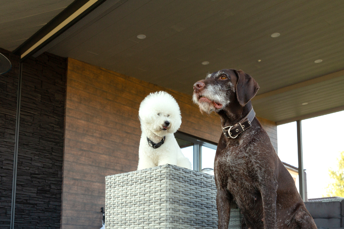 Друзья, неделя прошла, и мы готовы поделиться новой историей из жизни ваших четвероногих друзей в рубрике “Домашние животные доброградцев”. Сегодня мы в гостях у семьи Негода: Александра, Марины, Анны и Кирилла. У них две собаки: большой и умный дратхаар Ирма и симпатяга бишон-фризе Южанна, которую в семье называют просто Жужу. Давайте знакомиться! Дом семьи Негода на Рябиновой улице виден издалека - он словно корабль, причаливший к зеленому мысу. Сейчас его хозяева живут, как и многие доброградцы, на два города: здесь, в Доброграде, дети учатся в школе “МИР”, а родителей во Владимире держит работа. Вот семья и перемещается между двух берегов, а вместе с ними путешествуют их собаки Ирма и Южанна. Марина и Александр приезжали в Доброград с 2017 года. “Нам нравилось проводить здесь время, но сделать окончательный выбор было непросто. В итоге купили земельный участок и решили строить дом”, - рассказывает Александр. “Важен был даже не столько дом, сколько земля, территория”, - дополняет му