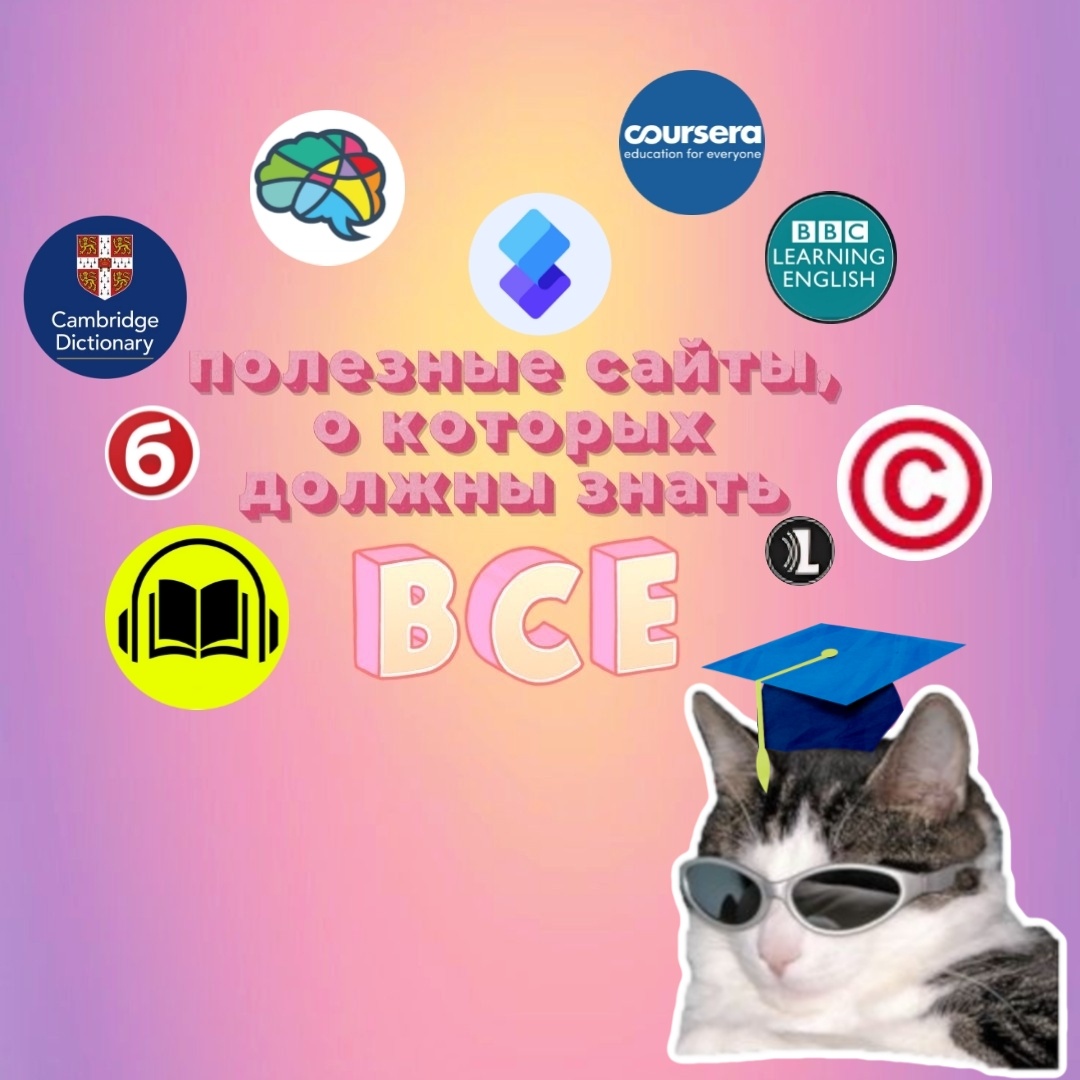 1. Audio Class Book - это ресурс, на котором вы можете послушать школьные учебники и не тратить время на прочтение скучных параграфов. https://t.me/audio_class_bot 2. Брифли - удобный сайт, который содержит в сокращенном варианте все произведения отечественных и зарубежных авторов. Незаменим, когда нужно освежить в памяти то или иное произведение из школьной программы. http://briefly.ru/ 3. Сambridge Dictionary - онлайн словарь, с четкими определениями на английском языке с русскими переводами. Более 25 000 практических примеров, показывающих, как используются слова. Справочные слова приведут Вас к точному значению, которое Вы ищете. Самый лучший переводчик! https://dictionary.cambridge.org/ 4. BrainApps - сервис для улучшения производительности мозга и развития познавательных функций: памяти, внимания и мышления с помощью специальных онлайн-тренажеров и учебных курсов. https://brainapps.ru/ 5. Study Stream - сайт для того, чтобы сфокусироваться на учёбе. Повышайте свою концентрац