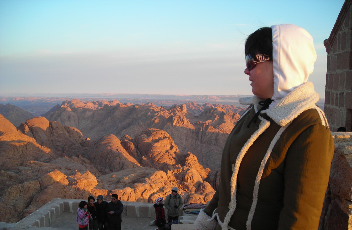 Последний привал был на площадке, до вершины от которой всего пять минут пути. Мы поднялись туда незадолго до рассвета, который был ещё в полутора часах от нас. Через пять минут мы уже дрожали от холода. А ещё через минуту мы взяла напрокат огромные бедуинские одеяла (вероятно, они видели на своём веку пару тысяч туристов). Аренда стоила три доллара за штуку. Ещё через минуту мы погрузились в дремоту. Мы никогда не думали что сможем спать практически на улице, тем не менее проводнику пришлось приложить усилия, чтобы разбудить нас.