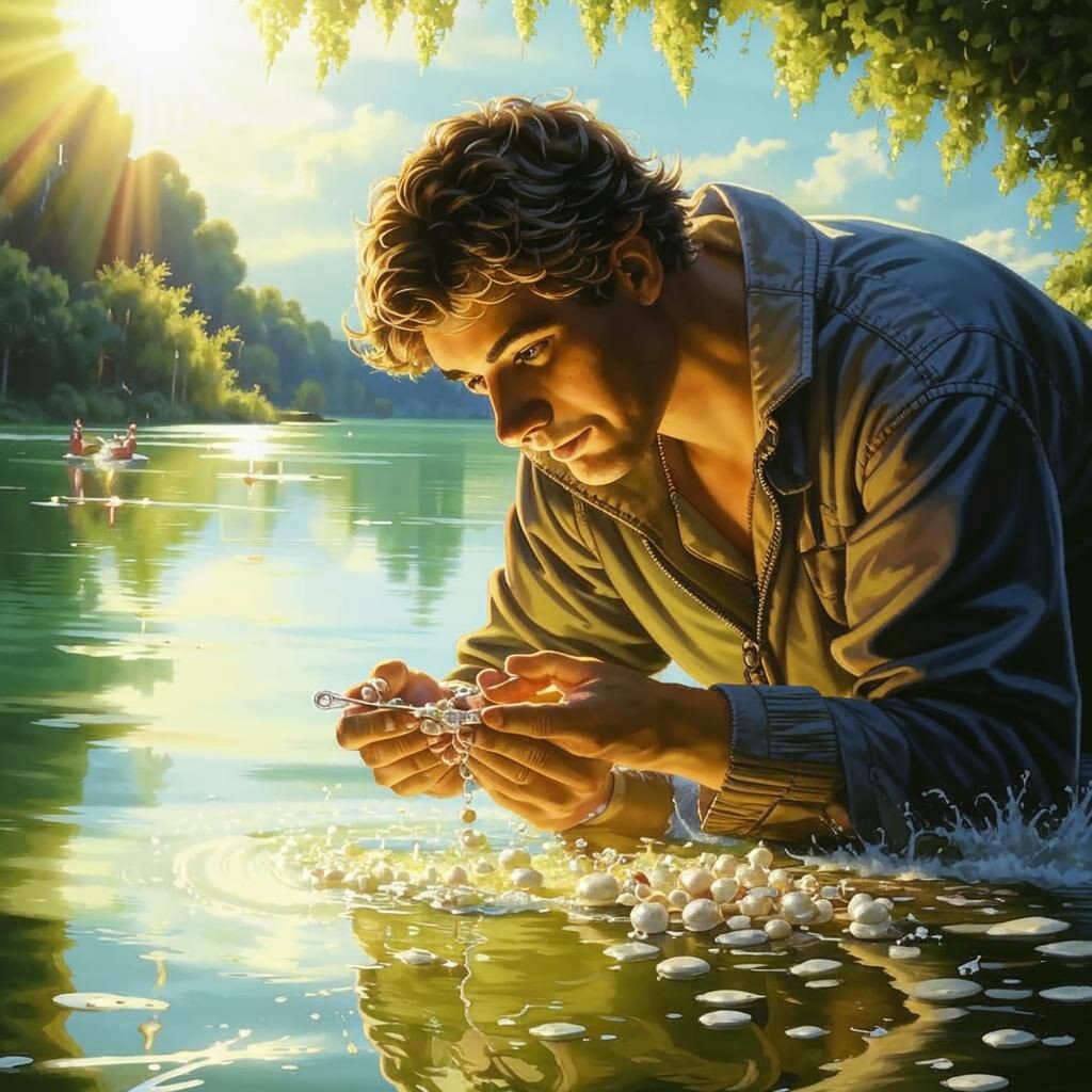 В деревне - июнь, жара и красота. Я приехал к бабушке на месяц после окончания института, чтобы ‚немного отдохнуть перед началом работы. Да и бабуле с хозяйством помочь, куры там, коровы, гуси. В первый же день так наломался на грядках! И пошел на реку - уже на закате. Искупался, растянулся на песочке. Вдруг в момент собрались тучи, подул ветер, река волну погнала. И тут что-то выбросило на берег. Прямо у моих ног. Я поднял - бусики жемчужные. Подумал, что кто-то из местных купался и потерял. Сунул в карман - думаю, поспрашиваю у деревенских.