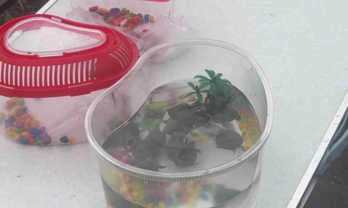 Они опубликовали видео. На кадрах можно рассмотреть около десятка маленьких черепах, которых поместили в пластиковый контейнер в воду.