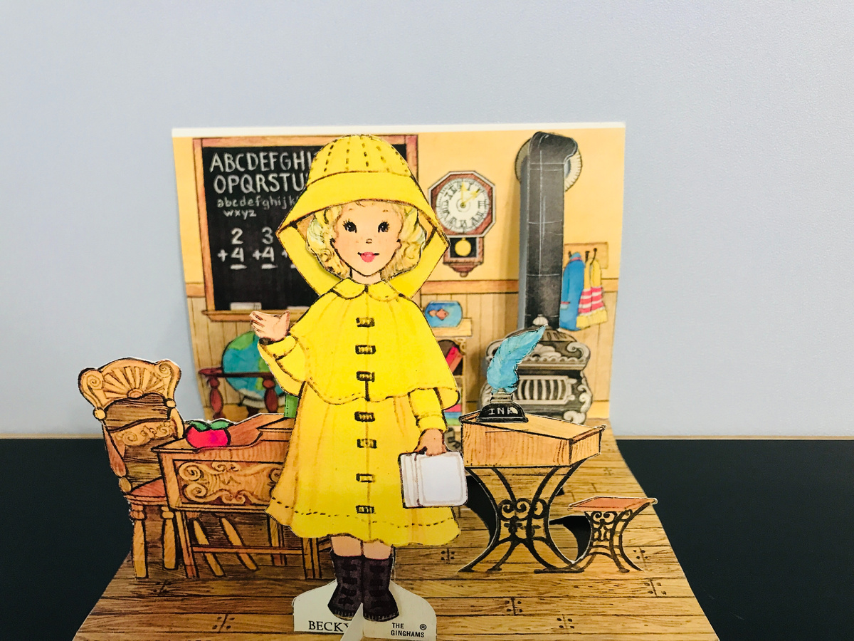 Учителя в детстве говорили, что когда мы вырастем, будем хотеть назад в школу. Я выросла, а в школу не хочу, работать мне нравится больше. Но вот Бекки Гингемс в школу ходит с удовольствием: Честно вам скажу, школьная комната Бекки намного уютнее той, в которой училась я. У нас не было такого замечательного глобуса, например. И печки не было, а были батареи: На столе у преподавателя не найти было такого румяного и спелого яблока, да и полотенчики не висели, чтобы вытирать руки после того, как помоешь тряпку, которой с доски стирали мел: Парты у нас были тоже другие, голубого цвета. В первых рядах сидели отличники, которые хотели, чтобы их спросили на уроке, а в задних рядах -- двоечники, которые прятались от учителей: Про религию нам рассказывали на уроках всеобщей истории, не вдаваясь в детали. В стиле -- есть три основные религии, общее у них то-то и то-то, в христианстве был раскол столько-то раз из-за того, что церковные иерархи делили власть и деньги: На переменах мы ходили по ко