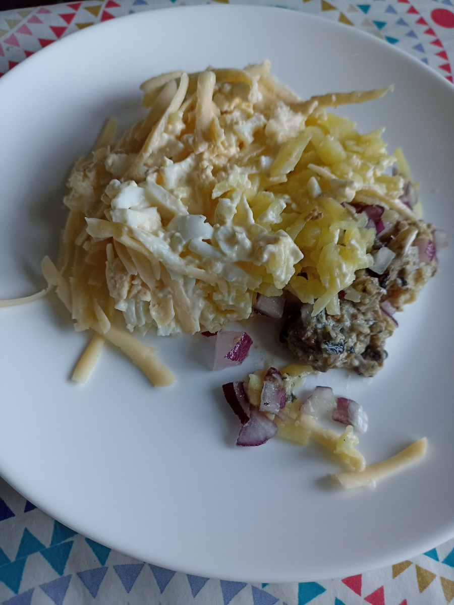 Следующий слой натертое варёное яйцо