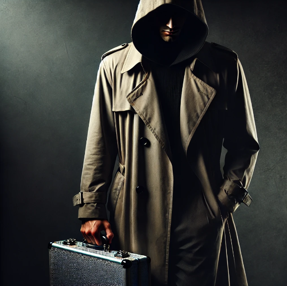 Внезапно, где-то впереди послышались шаги. Из тени вышел высокий мужчина в длинном плаще. Лицо его было наполовину скрыто капюшоном, в руке он держал маленький металлический кейс.