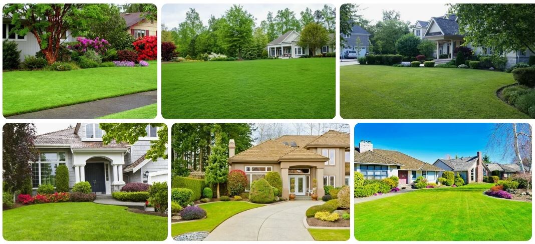 Оформление газона перед домом