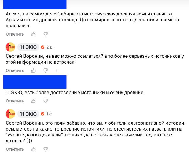 Признаться, давно их не встречал. Даже подумывал, а не спала ли мода на всю эту альтернативщину. И тут фактически двойной удар по мне, расслабившемуся. Вот первый случай: Вот, скажите мне, дорогие читатели. Откуда люди черпают эту информацию? Ведь наверняка из каких-то дешевых брошюрок да интернет-заметок. Но почему тогда верят в это. Честно скажу, я не против, чтобы Сибирь была "исторической древней землей славян", а Аркаим был "их древней столицей". Но ведь тому никаких свидетельств. Есть это многострадальное городище Аркаим, которое как только не склоняют: от места приземления НЛО и Шамбалы до прародины славян (или других народов) и чего еще моя фантазия даже представить себе не может, а разум удержать в памяти. Но ведь если звезды зажигают, значит это кому-то нужно. Так зачем кому-то культивировать эту антинаучную белиберду? Просто ради хайпа? Вряд ли. Скорее, что ради денег, ведь под эту раскрученную тему можно много книжек, журналов продать, а их сайты и странички будут пользо