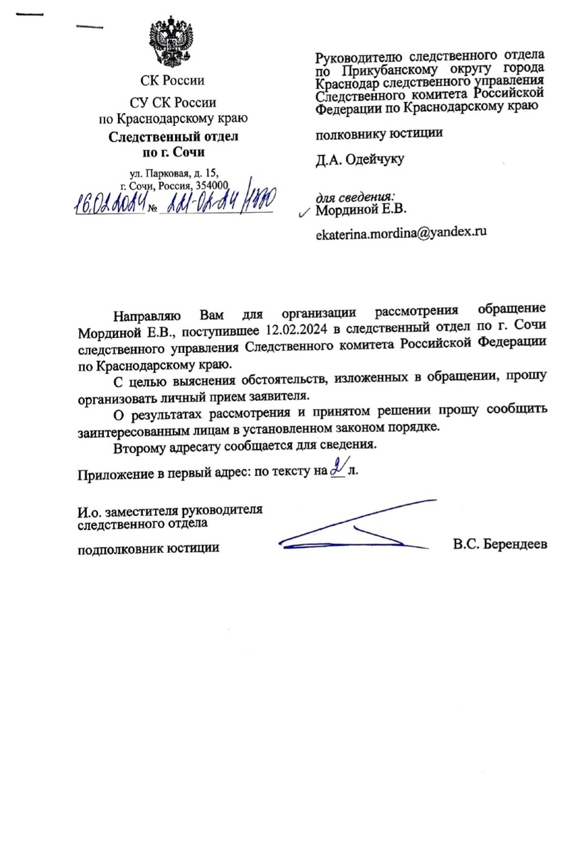 Позвонили из ОПГ. Пришло письмо "Счастья" От Следственного Отдела по г.Сочи