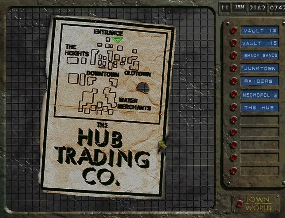 Хаб поразил меня до глубины души. Еще на подходе, от главных ворот доносились шум, музыка. Торговый узел явно находился на месте какого-то крупного довоенного населенного пункта. Но в отличие от странного темного города, встреченного мной ранее, Хаб был полон жизни. Остовы домов были тщательно отремонтированы и создавали впечатление вполне жилых и надежных одноэтажных строений. В городе функционировали полицейский участок и ресторан, находились караванные конторы, развозившие товары по различным городам. Улицы Хаба были широкими и чистыми, на центральной площади висела огромная доска объявлений. Агрессивно настроенных вооруженных людей не было – лишь охранники караванов у ворот города и полицейские в блестящих металлических доспехах ходили с оружием наперевес. Хаб создавал впечатление мирного торгового города – так мне о нем и рассказывали.
