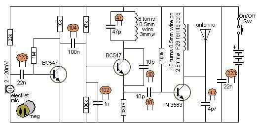 Конструкция стабильного радио жучка на пол километра. Жук был проверен неоднократно и показал высокие параметры. Широкий диапазон питания от 3 до 9 вольт, микрофон электретный, от китайского магнитофона. Микрофонный усилитель дает возможность поднять чувствительность жука до 6 - 7 метров, я использовал для усилителя отечественный транзистор КТ315.