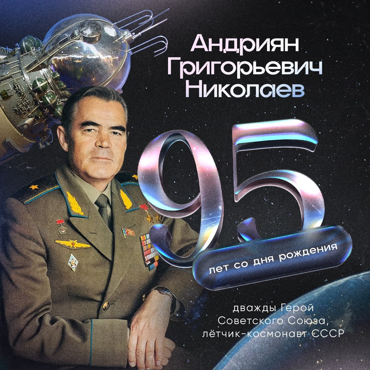 О жизни, О его работе, Любой из нас Узнать мечтал. Раскованно — словно в полете, Земляк-чуваш Нам отвечал. Это стихи поэта Юрия Семендера о великом сыне чувашского народа, космонавте №3, дважды Герое Советского Союза Андрияне Григорьевиче Николаеве. Сегодня исполняется 95 лет со дня его рождения. Имя Андрияна Григорьевича поистине стало символом мужества и стремления к звёздам. Его полет - историческое событие. Впервые космический полет длился 4 суток, в космосе человек находился в корабле без скафандра, не был привязан к креслу, и, к тому же, самостоятельно управлял космическим кораблем. Наследие Андрияна Григорьевича продолжает жить, вдохновляя новые поколения исследователей и инженеров на дальнейшие открытия и полеты в космос. Мы помним нашего великого земляка и гордимся его достижениями!