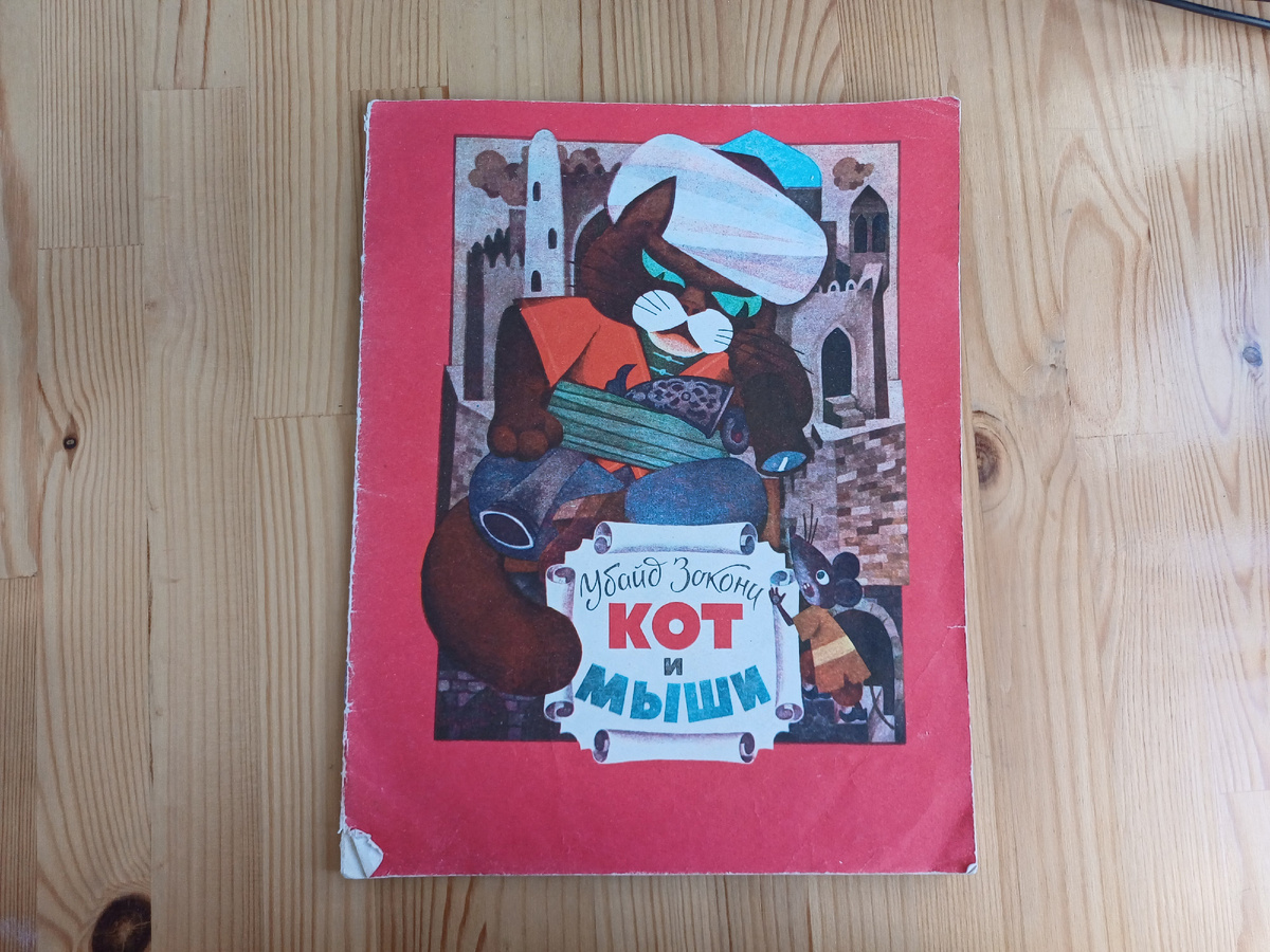Кот и мыши | Зокони Убайд детская книга СССР. Убайд Зокони — выдающийся юморист и сатирик таджикской классической литературы. Жил в XIV веке во времена правления четырёх политических династий: Ильканов, Джалаиридов, Инджуидов и Музаффаридов. В своих многочисленных баснях, сказках, аллегориях, занимательных рассказах поэт высмеивал нравы и моральные устои господствующего класса своего времени. Он первым из персидско-таджикских писателей откликнулся на призыв народа и открыто обрушился на феодальную систему, выступил против аристократии и высшего духовенства. В аллегорической поэме «Кот и мыши» Убайд Зокони обличает ревнителей веры, религиозных ханжей, призывавших людей к благочестию, а втайне предававшихся самым низменным страстям, разврату и чревоугодию. Сергей Израилевич Вишнепольский — известный книжный график «Кот и мыши» — поэма-сказка для младшего школьного возраста автора Убайд Зокони, изданная в 1989 году издательством «Адиб» в Душанбе. Другие авторы и характеристики кн