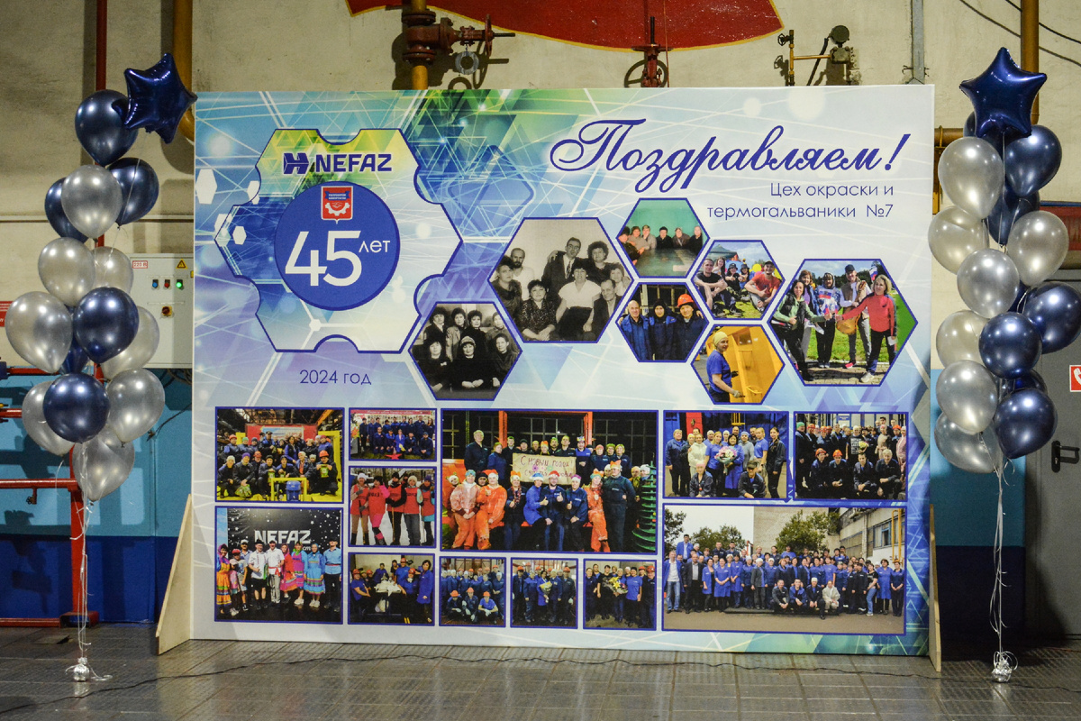 Одному из основных цехов ПАО «НЕФАЗ» – цеху № 7 – исполнилось 45 лет. Цех окраски платформ и механических узлов автосамосвалов (первоначально назывался именно так) был основан 1 сентября 1979 года приказом директора завода Юрия Гулько (приказ № 539 от 22 августа).