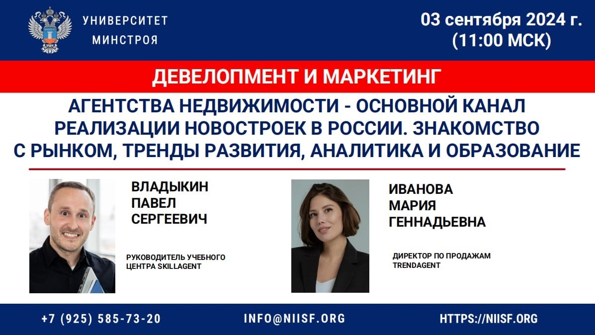 Вебинар. Агентства недвижимости - основной канал реализации новостроек в России. Знакомство с рынком, тренды развития, аналитика и образование в отрасли риелторов.