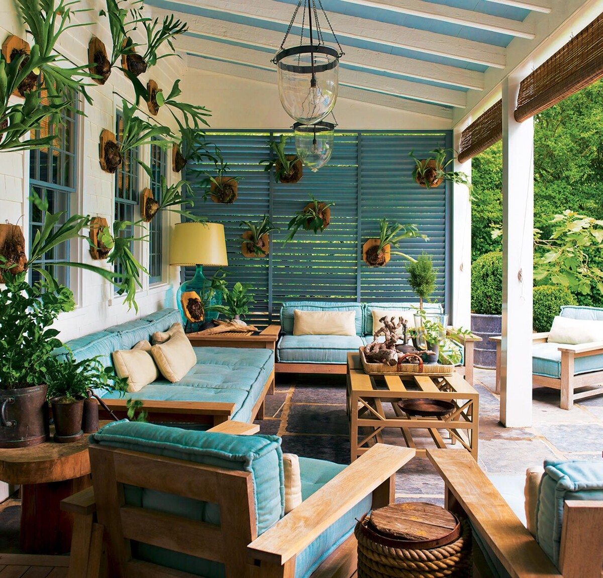 Во-вторых, веранда должна быть достаточно большого размера. В ширину минимум 3 метра, в длину от 6. Тогда можно с комфортом разместить не только мягкую зону, но и стол со стульями, а возможно еще и зону летней кухни.