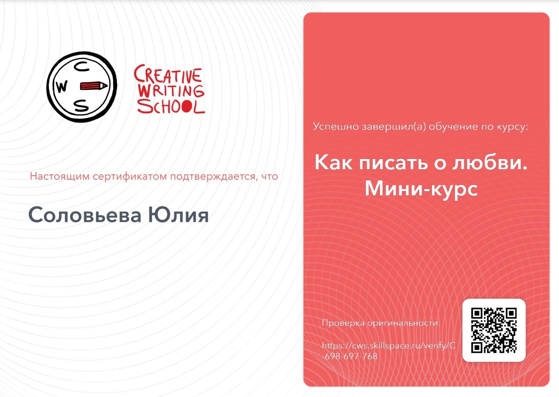 Всем привет! Хочу поделиться последними новостями из своего литературного мира. Сегодня мне наконец-то прислали сертификат об окончании мини-курса "Как писать о любви", рецензию с которого я выкладывала ранее. Финальное задание давно проверено, а сертификат все никак не присылали. Сегодня обнаружила его в личном кабинете Школы. Мелочь, а все же приятно. Близится к окончанию подготовительная неделя к марафону Книга за осень. За это время мы, участники, успели немного познакомиться, а еще - выполнить три задания. Первое - расписали планы произведений. В этом помогали кураторы и видеоуроки. Потом мы писали план движения книги и сюжет. Кроме того, я еще составила карточки основных персонажей, поэтому мне стало казаться, что они как будто ожили. Участники марафона оценивают планы друг друга, все обсуждают и просто общаются. Третье задание заключается в определении объемов будущего произведения. Я вообще пока слабо представляю, потому что объем для меня большого значения не имеет. Но приме