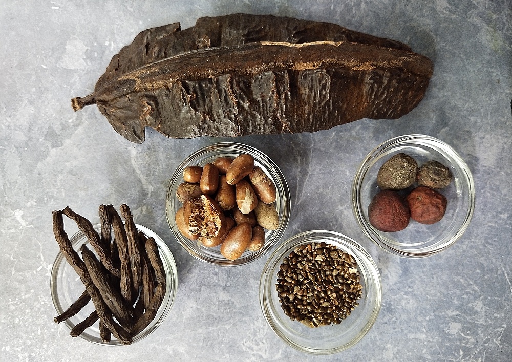 Давайте еще раз взглянем на диаграмму. Мы увидим, что мускатный орех, разнообразные кардамоны и разнообразный перец, включая ксилопию – и есть три главные ароматические африканские пряности. И это и есть те, что лучше всего описаны, изучены и более-менее доступны сегодня вне Африки. А вот с дополнительными пряностями пока существенные пробелы. Это все очень разные части растений: семена, кора, листья, корни и корневища. Часть из этих растений нам довольно хорошо знакома: например, солодка и имбирь, да даже и базилик, хоть и африканский, но более-менее понятен. Назначение еще части – ясно по названию – «чесночное (луковое) дерево» и «африканский миндаль». А что же такого интересного в остальных, что именно они привносят в общую картину пряных африканских смесей? Давайте разбираться дальше. Открывает список дополнительных пряностей огромный стручок одной из африканских мимоз, которых на континенте огромное ботаническое разнообразие. 5. ТЕТРАПЛЕВРА (TETRAPLEURA TETRAPTERA) Тетраплевра -