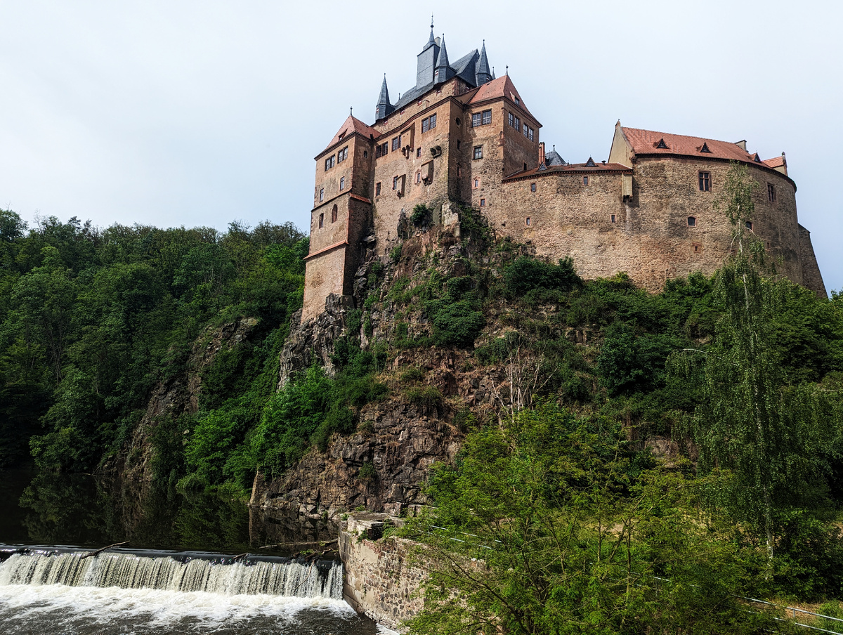 Замок Крибштайн по праву считается самым красивым рыцарским замком Саксонии. Его готические башни и массивные стены гордо высятся на скале среди лесов, над рекой Чопау. История замка насчитывает уже более 600 лет. За это время он несколько десятков раз менял владельцев - переходил по наследству, закладывался, продавался и перепродавался, использовался для оплаты долгов и сделок. Ныне существующий замок был выстроен, Дитрихом фон Беервальде в последней трети XIV века взамен старого родового замка в деревне Беервальде. На протяжении истекших шести веков замок многократно перестраивался для удобства проживания в соответствии с изменением представлений об удобстве жизни. В 1465 году Крибштайн приобрёл Хугольд III, обермаршал курфюрста Эрнста и герцога Альберха с именем которого связаны обширные строительные преобразования замка.В ходе этих работ замок приобрёл свои современные размеры и облик. После смерти Хугольда III в 1490 году Крибштайн принадлежал в XVII и XVIII веках, дворянским родам фон Шёнберг и фон Милкау. Наконец, в 1825 году замок купил Ганс-Карл фон Арним , во владении наследников которого он и оставался вплоть до 1945 года. В последний раз замок Крибштайн был частично перестроен в стиле неоготики Была не только затронута оригинальная средневековая планировка внутренних помещений, но также частично разобрана северная оборонительная стена (с потерей фахверковой надстроенной галереи). Больше всего пострадал фахверковый кухонный корпус, будучи полностью перестроенным согласно вкусу времени.