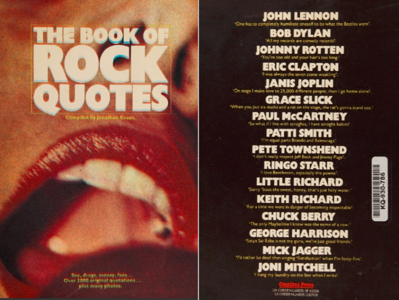 1) Jonathon Green (comp.) - "Book of Rock Quotes" (1977, 1978 revised)