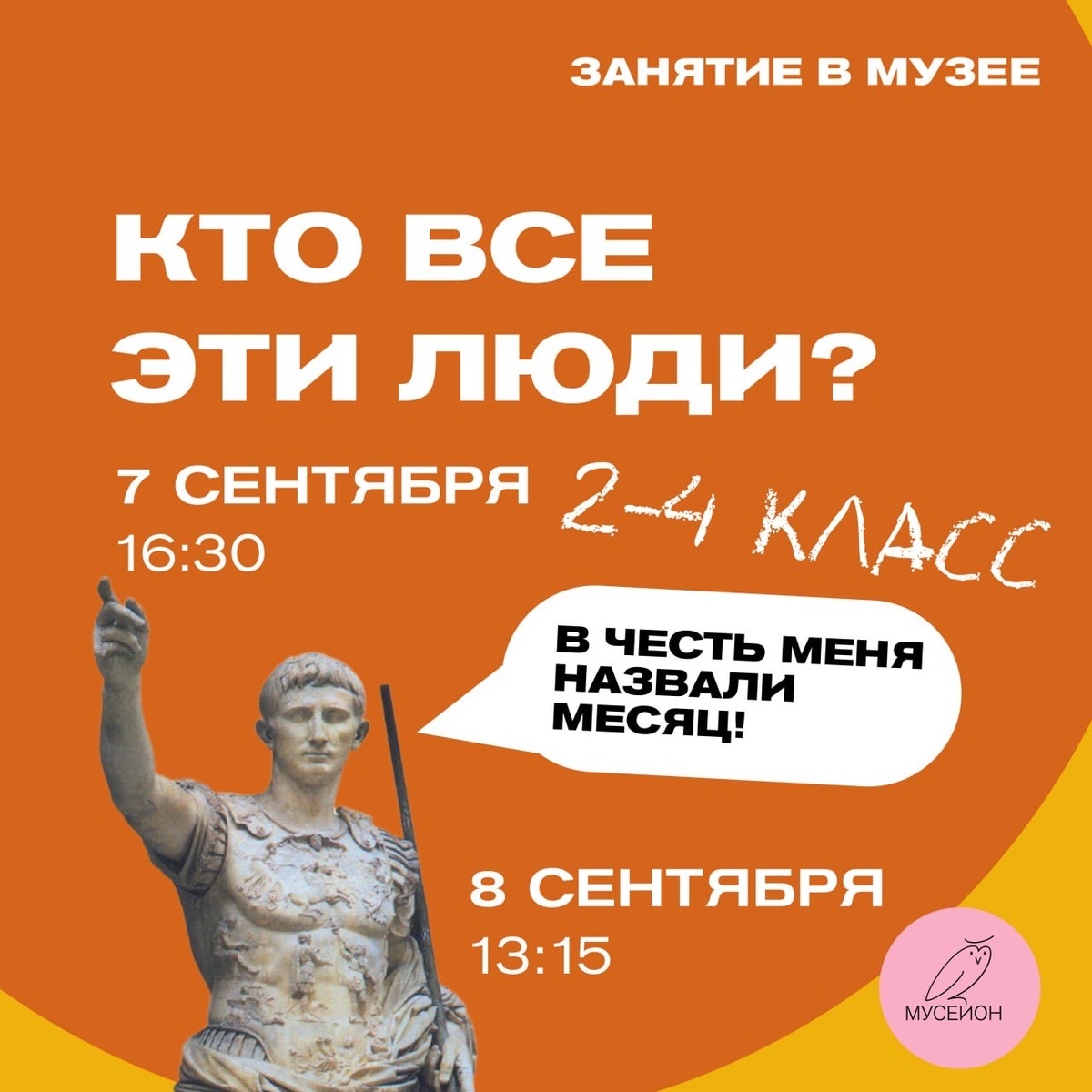 В занятии «Кто все эти люди» для 2-4 классов коллеги из «Мусейона» научат распознавать знаки и атрибуты персонажей искусства так, что можно будет узнать их в любом музее, опередив друзей!
