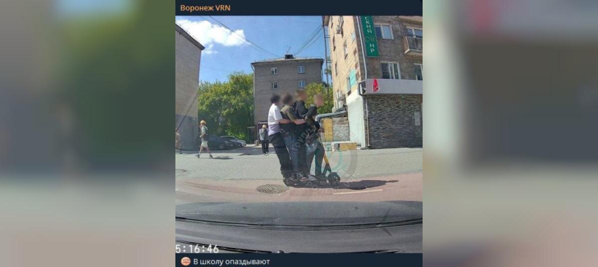 «В школу опаздывают?» Толпу подростков на одном самокате запечатлели воронежцы