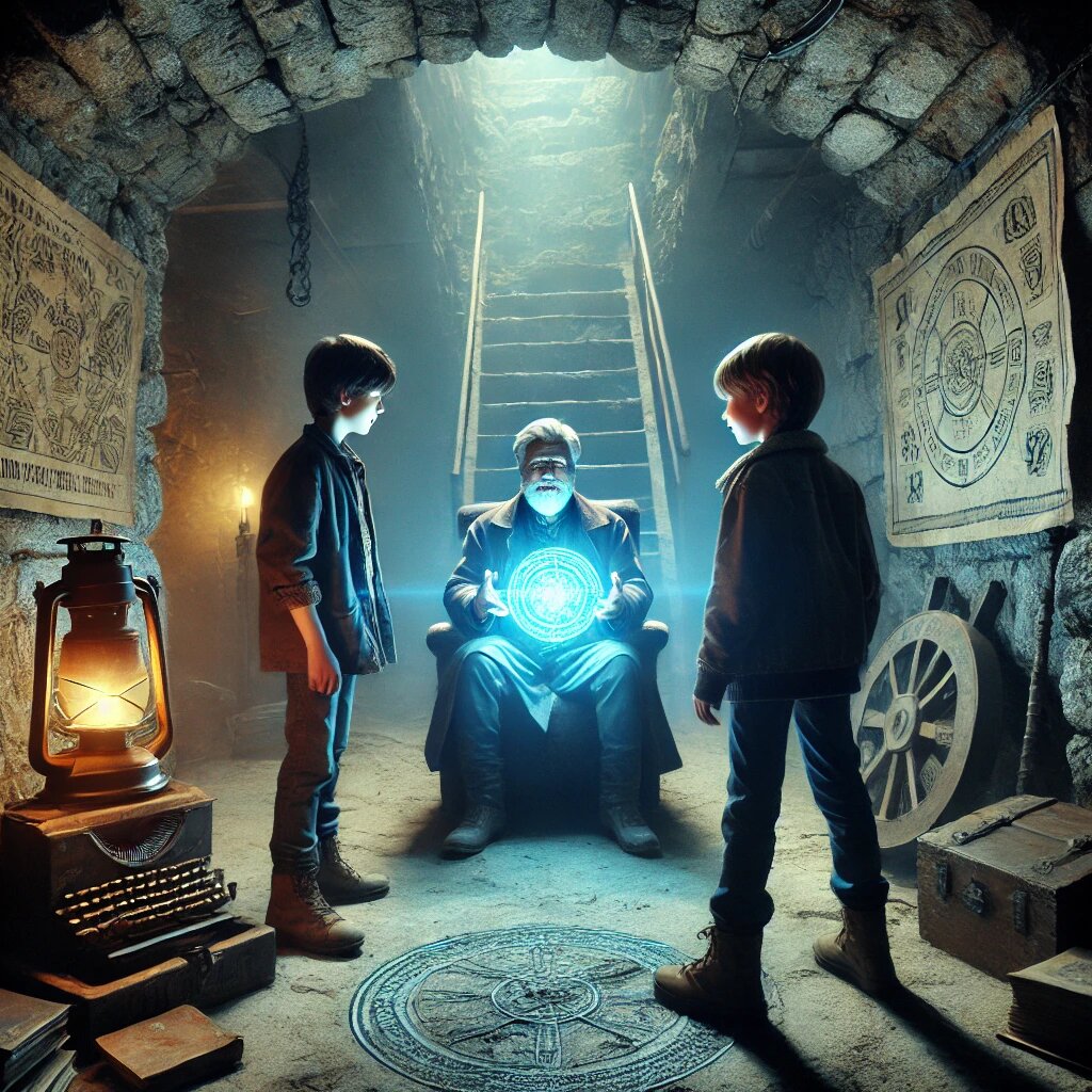 Артём и его друзья, Никита и Лёша, продолжали осторожно спускаться по древним каменным ступеням под мельницей. Казалось, что воздух становился тяжелее с каждым шагом, а стены тесного коридора были покрыты странными знаками. Впереди тускло горел свет, и ребята остановились, прислушиваясь. "Вы это слышали?" — шёпотом спросил Никита, всматриваясь в темноту. Ему показалось, что там кто-то шуршит. Артём лишь кивнул и поднял палец к губам, призывая всех к молчанию. Они подошли ближе к источнику света и увидели деревянную дверь, которая была полуоткрыта. За ней оказалась большая комната с пыльными полками, на которых стояли старинные книги и инструменты. В центре комнаты — стол с разложенными картами. Но не это привлекло внимание ребят. В углу комнаты, на старом кресле, сидел пожилой человек, держа в руках странный амулет, светившийся синим светом. "Наконец-то вы пришли," — заговорил старик, не поднимая глаз от амулета. — "Я вас ждал." Артём сделал шаг вперёд: "Кто вы?" Старик медленно поднял