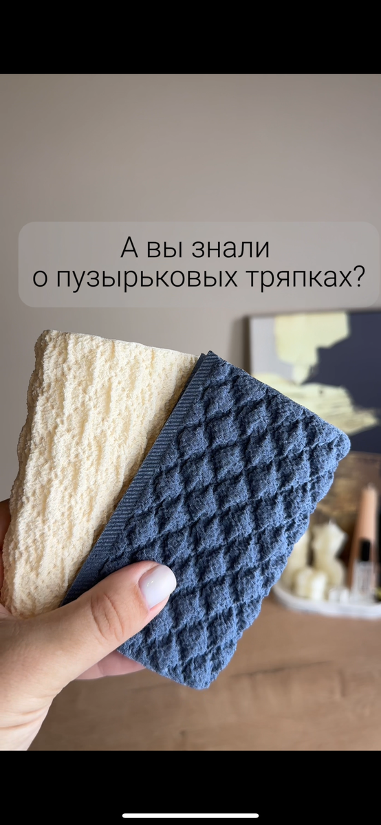 Купила интересную тряпку. Называется пузырьковая. И я была в шоке, насколько она хороша! Отлично отмывает всё! Быстро сохнет, а значит не заведутся бактерии! Заказывала на WB в комплекте идут 2 шт. Кстати газовую плиту реально отмыла без моющего средства, просто с помощью этой тряпки! Ролик у меня можно посмотреть в профиле! Артикул 250570646 вот эти тряпочки! Заменят обычные губки!