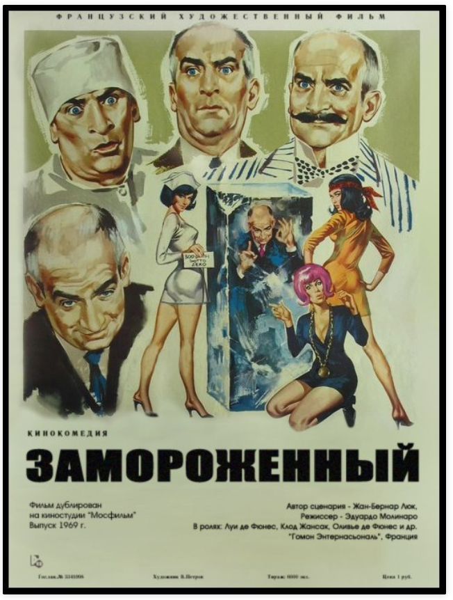 А данной публикации давайте посмотрим, какие афиши создавали в СССР для проката иностранных фильмов. Я пробежался по непаханным полям Интернета и нашел много примеров афиш. Попробуем их оценить с точки зрения обычного зрителя. Вот, к примеру, мы видим афишу с названием фильма, но не знаем, о чем сам фильм. На мой взгляд, это идеальная афиша. Центральное место уделено изображению Луи де Фюнеса, наличие которого в фильме уже означало успех. "А что это за девицы рядом с Фюнесом?" - может спросить зритель. И только лишь после просмотра фильма мы узнаем, почему персонажи в таких нарядах. Как мне кажется, это очень информативная старая афиша, которая вполне отвечает на все вопросы зрителей. Фильм называется "Багдадский вор", а потому сопутствующая картинка уже говорит зрителю, в каком духе создан данный фильм. Если сравнить с постерами для других стран, то наша советская афиша довольно "целомудренна". Само оформление создано в духе оригинальных афиш. Между прочим, неплохая портерная точн