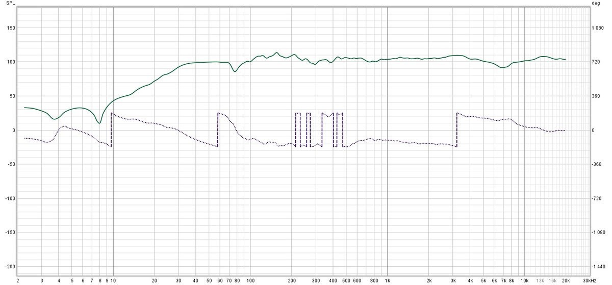 И о чудо, да, о чем я и говорил, на краях имеются завалы, особенно снизу достаточно...Не слабый завал в примерно 3дб на 20гц, а на верху происходит что то непонятное, ачх начинает плесать, а примерно после 18кгц сдувается...