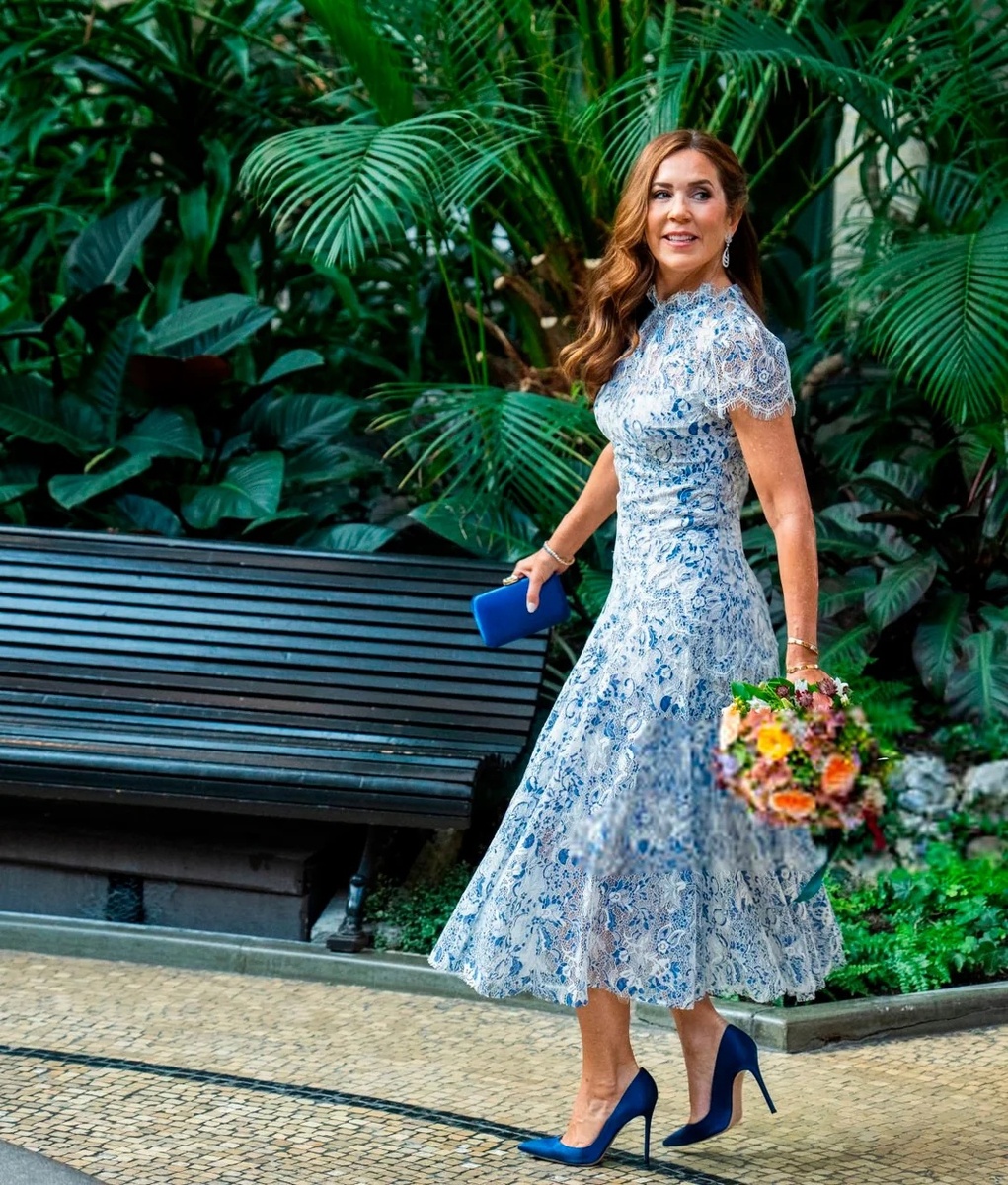 4 сентября Ее Величество появилась на вручении исследовательской премии Фонда Карлсберга. Мэри с радостью вручала награды лауреатам премии. Награды призваны отдать дань уважения исследователям, внесшим вклад в датские фундаментальные исследования на международном уровне. На мероприятие королева прибыла в потрясающем наряде. Да и весь образ был шикарен: невероятно красивое платье от австралийского дизайнера Moss and Spy уже не раз надевала королева, но именно в этот раз я просто влюбилась в образ)). К платью были подобраны синие туф