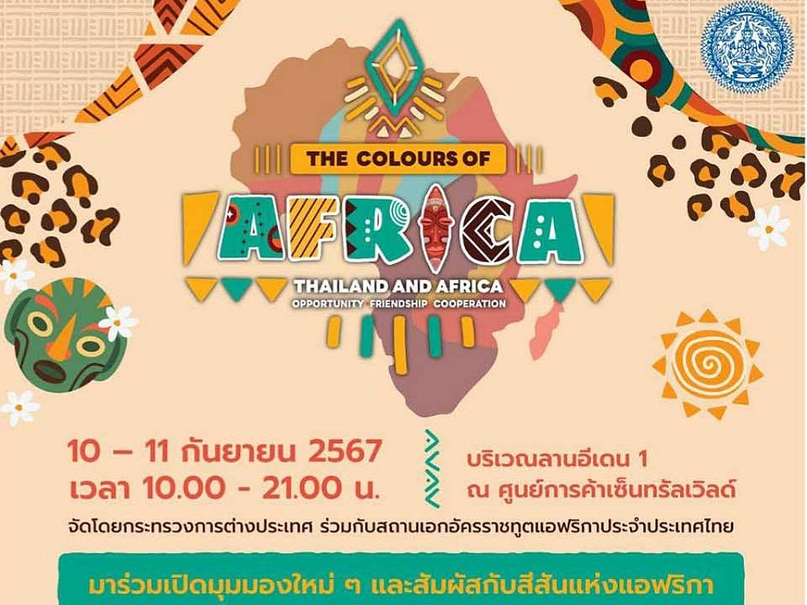Фестиваль «Цвета Африки 2024» посвящён перспективам, дружбе и сотрудничеству Таиланда с африканскими странами. Обычно такими мероприятиями занимается Туристическое управление Таиланда, но в этот раз организатором стало Министерство иностранных дел. Тайские дипломаты привлекли к участию 12 африканских стран: Ботсвана, Гана, Египет, Зимбабве, Кения, Ливия, Марокко, Мозамбик, Нигерия, Сенегал, Уганда и ЮАР. Также к фестивалю подключились различные общественные и частные компании. Гостей фестиваля ждут весёлые конкурсы и розыгрыши. Главный приз — бесплатный тур в Африку. Но будет ещё много чего интересного: ярмарка африканских товаров и алкоголя, дегустация африканского чая, кофе и какао, демонстрация африканской кухни, культурные и музыкальные выступления, показ африканской моды, викторина для студентов (самые эрудированные смогут выиграть африканские сувениры и подарки от партнёров мероприятия). Также будет полезно заглянуть в павильоны посольств и партнёров. Остальные подробности об это
