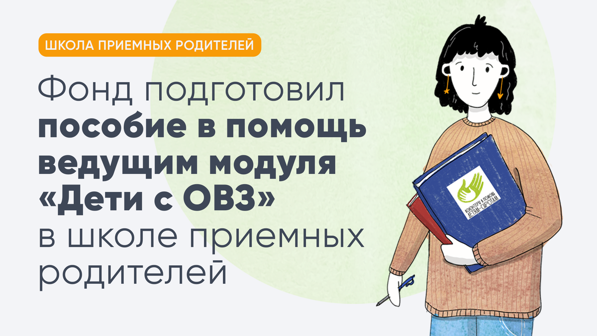 В этот раз психологи фонда подготовили воркбук (workbook, рабочая тетрадь) для ведущих модуля «Дети с ОВЗ», который проводится в рамках школы приемных родителей для тех, кто уже прошел общий курс ШПР и планирует или уже воспитывает ребенка с особенностями развития.