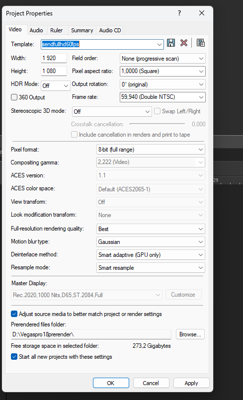 Настройки для Vegas Pro 18(Full HD 60 FPS)