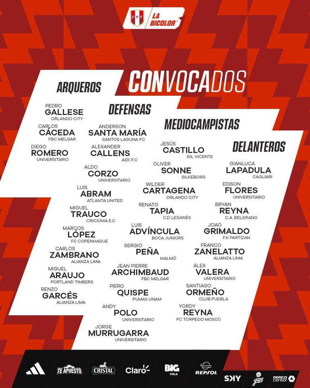 В сборной появились дебютанты, вернулся Ренато Тапиа, а также вызвали Йорди Рейну из ФНЛ