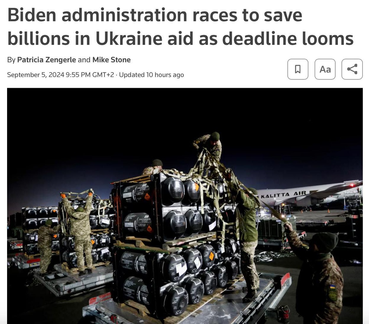 Reuters утверждает, что администрация Джо Байдена ведет срочные переговоры с Конгрессом, чтобы разрешить использовать $6 млрд военной помощи Украине до конца 30 сентября. Если средства к этому моменту не передадут Киеву, есть риск их потери. Речь идет о средствах в рамках президентского распоряжения о сокращении средств (PDA), позволяющего президенту США передавать оборонные товары и услуги из запасов США в ответ на чрезвычайные ситуации. В частности, речь идет об операции ВСУ на Курщине и продвижении россиян в Донецкой области. Большинство из $7,8 млрд, которые были на PDA согласно законопроекту, подписанному Байденом в апреле, не были использованы, поэтому чиновники пытались найти способ уберечь непредоставленные $6 млрд от истечения срока действия 30 сентября 2024 года. Источники агентства сообщили, что Госдеп надеется добавить расширение полномочий PDA в Резолюцию о продлении, краткосрочный законопроект о чрезвычайных расходах, который Сенат и Палата представителей должны принять в