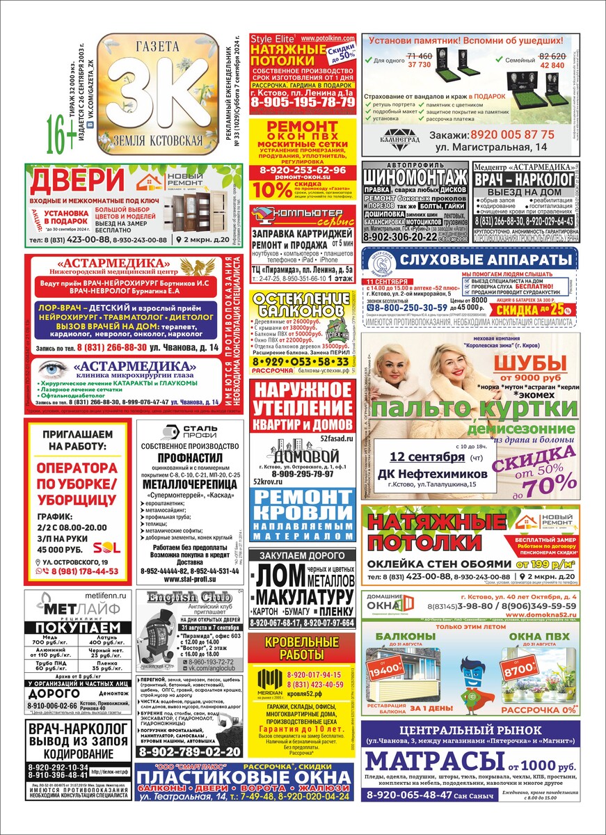 Газета "ЗЕМЛЯ КСТОВСКАЯ"№ 33 (1029) от 07.09.2024г