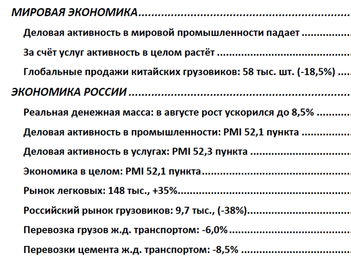 -- рынок грузовиков хоть и падает, но остаётся большим по объёму (около 10 тыс. в месяц);