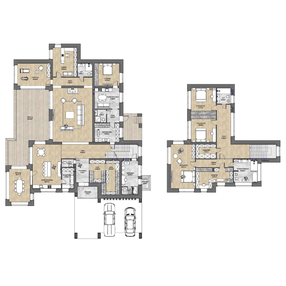 Годами существовала практика разделения строений по их назначению. Отдельно стоящая баня, обособленный гараж, беседка — все эти объекты необходимо было разместить на участке согласно нормам, снабдить удобной дорожно-тропиночной сетью, вписать в ландшафт. Теперь же мы нередко проектируем дома, где все объекты логично собраны в одном строении.