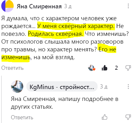 Напишу подряд комментарии девушки. Они шли под разными статьями, но когда их собираешь подряд, вырисовывается некая целостность ситуации:
