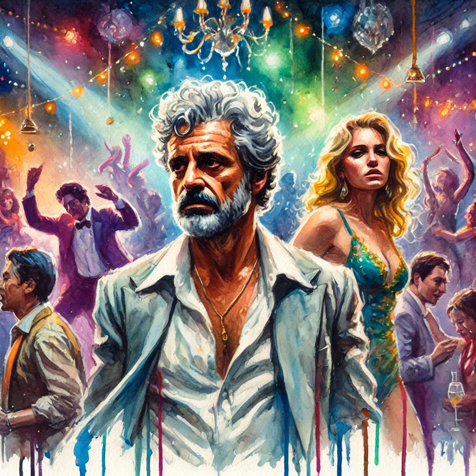 В самом начале этого кино Тони, находясь в клубе, узнаёт в Джорджио старого знакомого (а он её нет) и брызгает ему в лицо шампанским. Могло ли такое остаться не удостоенным внимания? Конечно, нет. Как мы видим главная героиня первой идёт на контакт, хотя, как мы потом обнаруживаем, она давно в курсе о наличии у него привычки окружать себя большим количеством женщин. Случайно ли она идёт первой на контакт? Не думаю. Обычно мы идём на общение с теми, кто бессознательно готов играть и в нашем жизненном «спектакле».